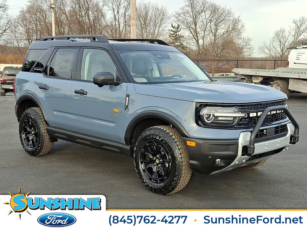 SASQUATCH BADLANDS PACKAGE Deletes overhead console w/sunglasses storage, dove gray seat inserts w/orchid yellow accents and stitching, Brush Guard, Tires: P235/65R17 All-Terrain, High Clearance Fender Flares, Recovery Hooks, 2 casted in front and 2 D-ring in rear, Auxiliary Switches & Wiring, HOSS 3.0 Off-Road Suspension, rear Bilstein position sensitive dampers, Wheels: 17 Ebony Black-Painted Aluminum, Rear Black Bumpers, Molded-in-color w/steel plates, 850W Engine Cooling Fan, Fender Tie Downs, POWER MOONROOF, BADLANDS TECH PACKAGE noise reduction module, B&O Sound System by Bang & Olufsen, 10 speakers and subwoofer, Connected Navigation, 1-year subscription, pinch-to-zoom capability, live traffic, predictive destinations and route guidance and one box search, Navigation services require SYNC 4 and Bronco Trail App (optional on select vehicles), complimentary connect service and the FordPass app (see FordPass terms for details), Customer receives a complimentary 1-year subscription of navigation services when an eligible vehicle is added to a members FordPass account, Trial period begins on the new vehicle warranty start date, At the end of the complimentary period, navigation service will terminate, Connected services and features depend on compatible AT&T network availability, Evolving.