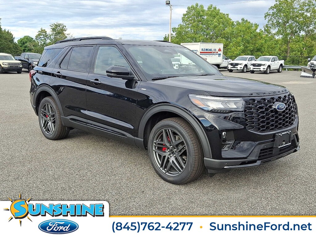 PANORAMIC VISTA ROOF W/POWER SHADE remote control front windows (opens front windows from outside of the vehicle via the key fob), PREMIUM PACKAGE 110V/150W AC Power Outlet, Replaces the powerpoint port on the rear side of the center floor console, Auto-Dimming Interior Rearview Mirror, Memory Drivers Seat, Power-Folding Sideview Mirrors w/Autofold, power and heated glass, LED turn signal indicators, security approach lamps, drivers side auto-dimming and driver and passenger side memory, Rain-Sensing Wipers (Front Only), Ambient Lighting, Wireless Charging Pad, 2nd Row Heated Seats, ST-LINE STREET PACK Wheels: 21 Magnetite-Painted Aluminum, Tires: P275/45R21 AS BSW, Performance Brakes, Red Painted Perf Front & Rear Brake Calipers, FORD BLUECRUISE EQUIPPED (1-YEAR PLAN) See ford.com/bluecruise for version details, Select option to purchase 1 year of BlueCruise access at time of vehicle order, After this initial duration, customers need to purchase a subscription to continue using BlueCruise, See subscription options and pricing on ford.com/bluecruise, Not available to military personnel sales (WAFAC), SECURICODE KEYLESS ENTRY KEYPAD, 18 SPARE WHEEL & JACK KIT 18 spare tire, FRONT & 2ND ROWS FLOOR LINERS W/CARPET FLOOR MATS front and 2nd rows black carpet floor mats, 2ND ROW CAPTAINS CHAIRS W/E-Z ENTRY & ARMREST E-Z entry is manually activated, Replaces standard 2nd row 35/30/35 bench seats, TRANSMISSION: 10-SPEED AUTOMATIC (STD).