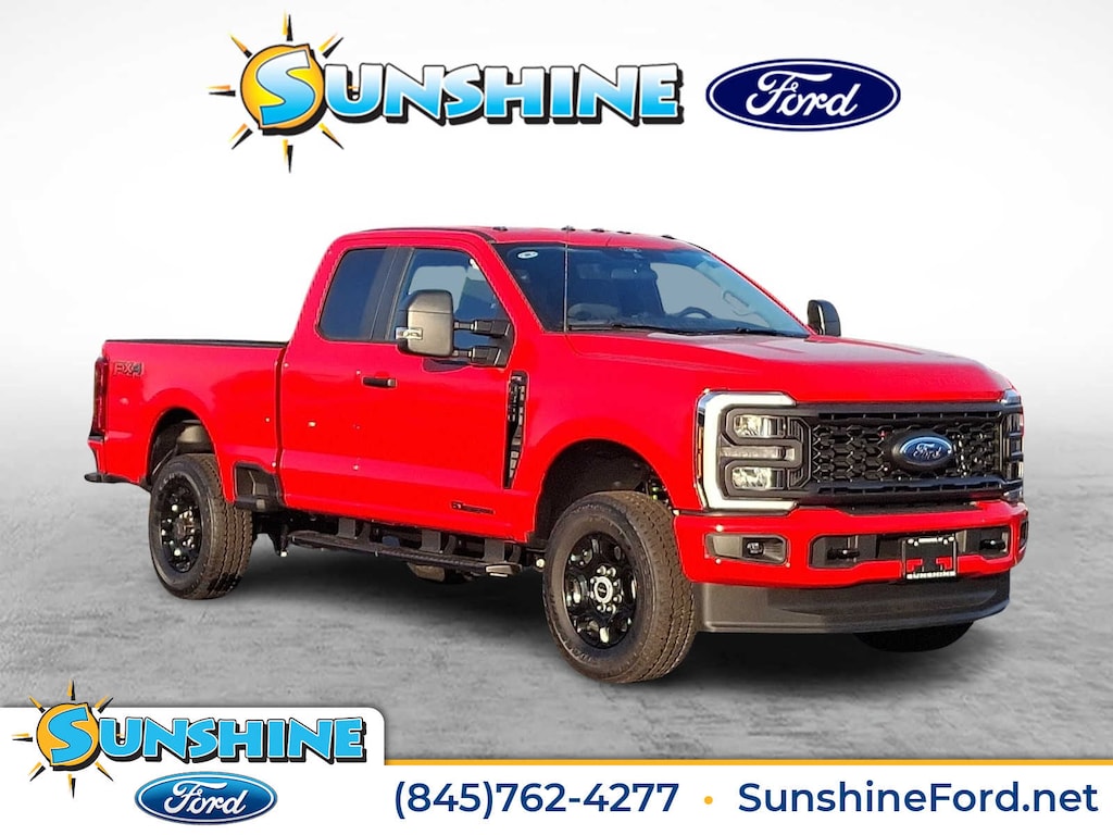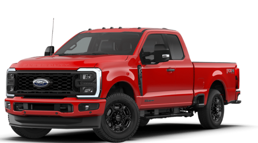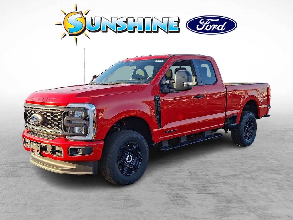 Onboard Communications System, iPod/MP3 Input, Back-Up Camera, 4x4, Turbo Charged Engine, Hitch, ELECTRONIC-LOCKING W/3.55 AXLE RATIO, ENGINE: 6.7L 4V OHV POWER STROKE V8 T... XL trim, Race Red exterior and Medium Dark Slate interior.